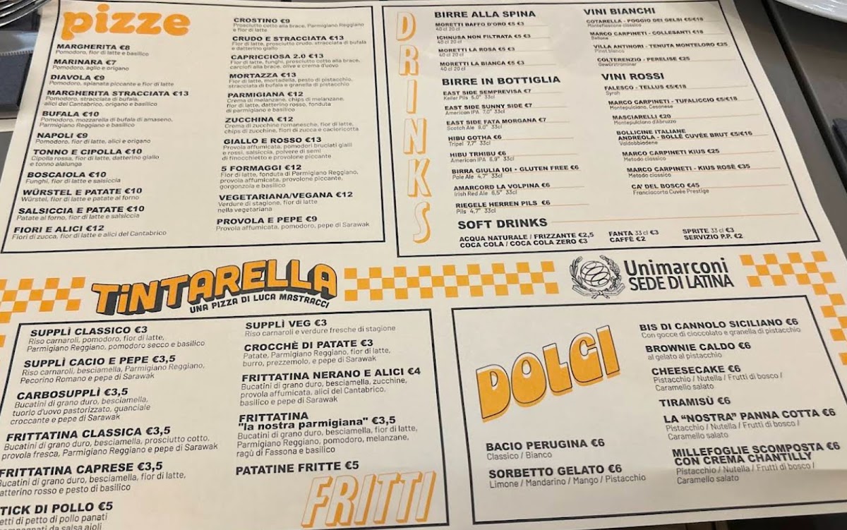 Tintarella is celebrated for its delightful menu, featuring a variety of pizzas that stand out for their flavor and quality. Guests rave about the crispy supplì and the thin, light pizza crust, which heightens the experience. Highlights include their Margherita and unique Capricciosa sans tomato sauce, both garnering praise for their taste. While some comments note slight imperfections, the overall consistency in quality makes a visit worthwhile.